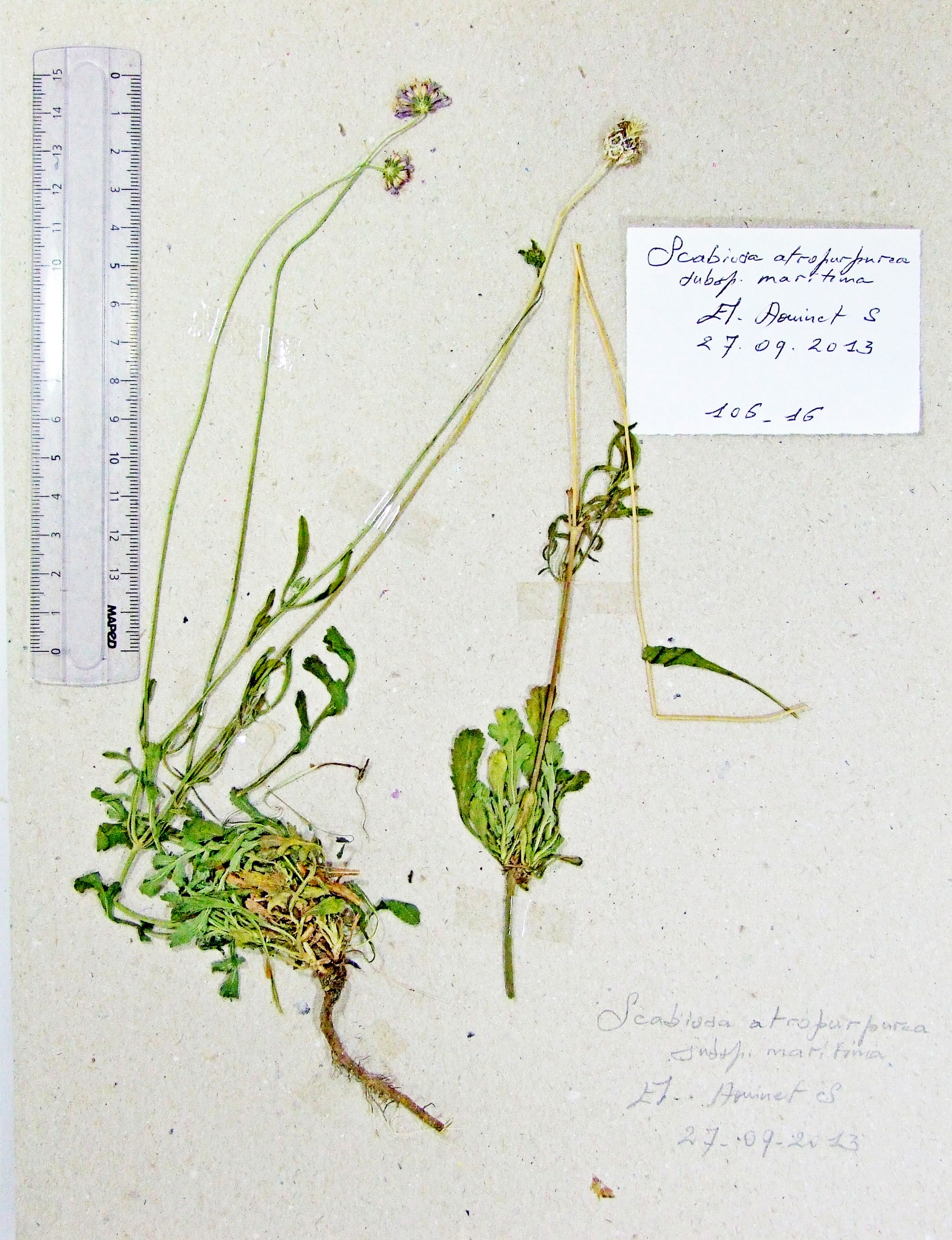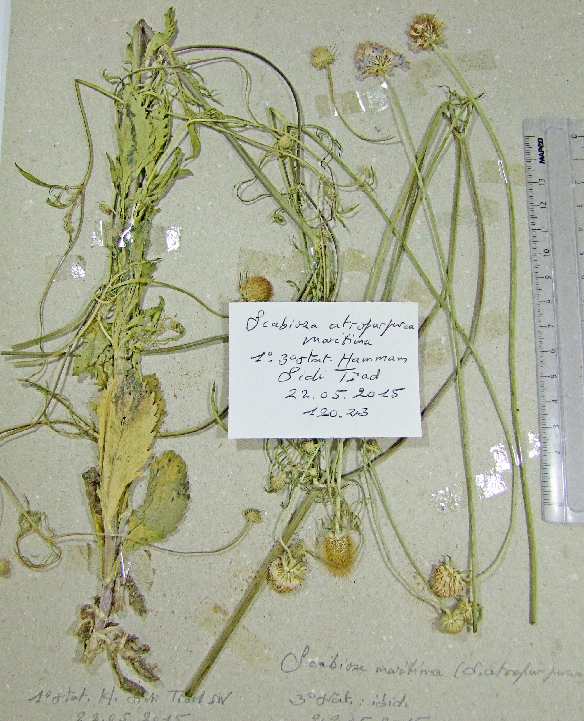 | 103_44 | Dipsacaceae Sixalix atropurpurea (L.) Greuter & Burdet subsp. maritima | x=8.169861 y=36.382472 z=984 m | Aïn Zana W Souk Ahras 2012-06-29 | |