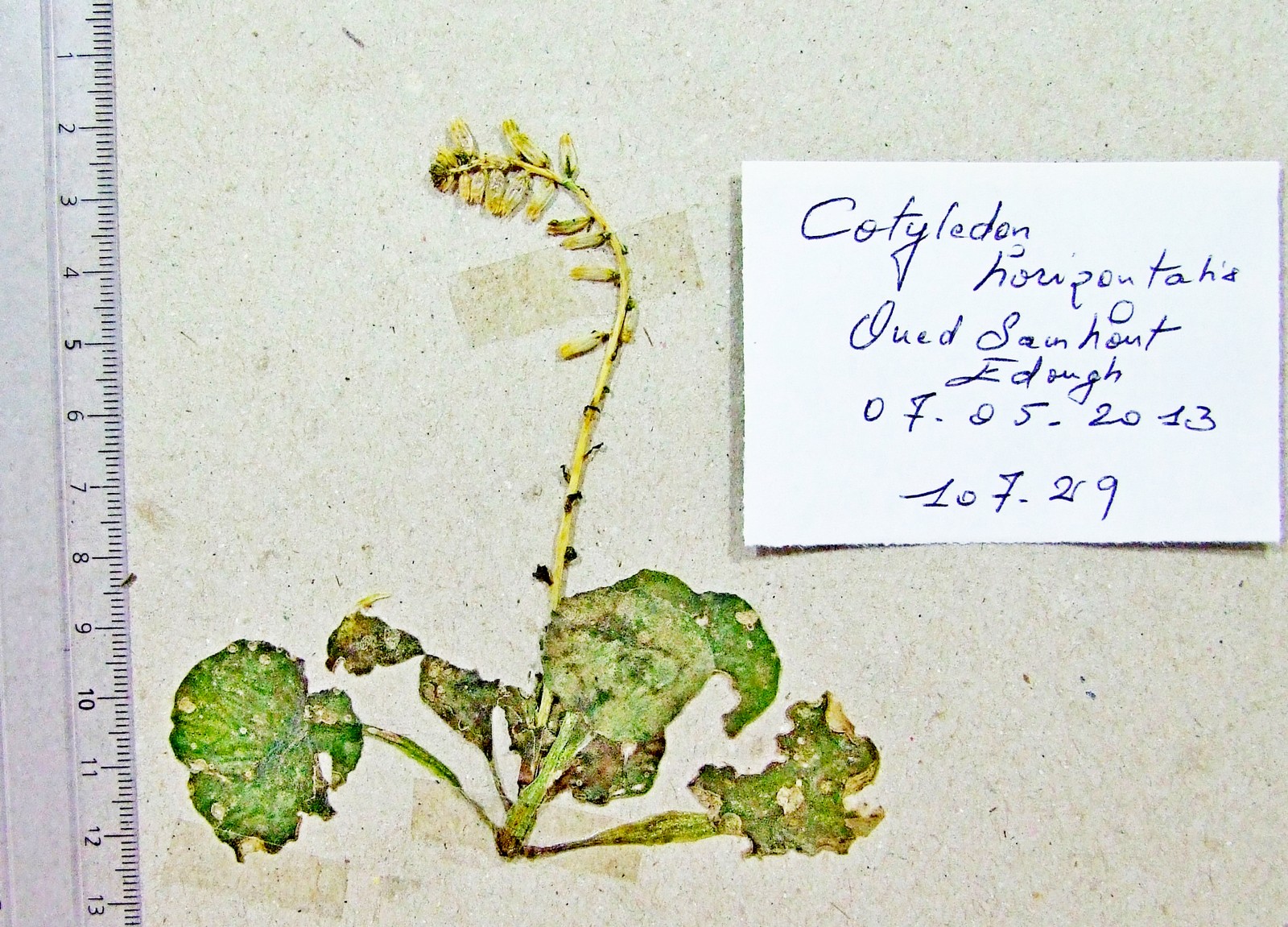 | 107_29 | Crassulaceae Umbilicus horizontalis (Guss.) DC. | x=7.665639 y=36.966111 z=40 m | Voile Noire W Annaba 2013-05-07 |  |