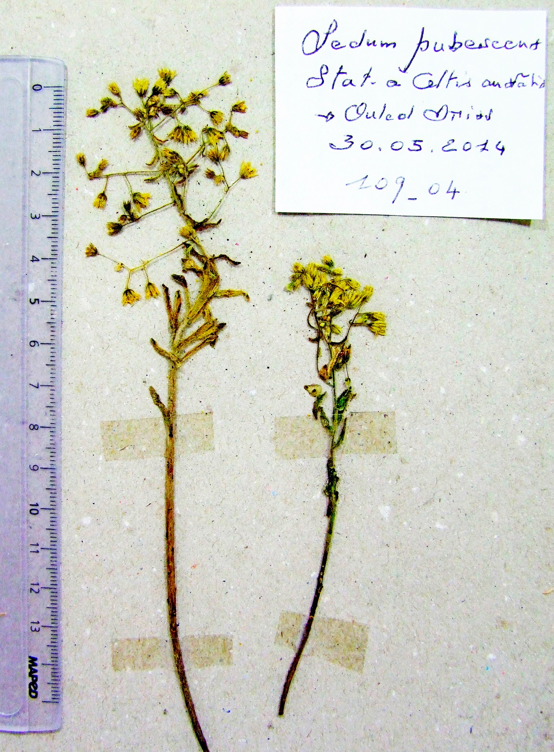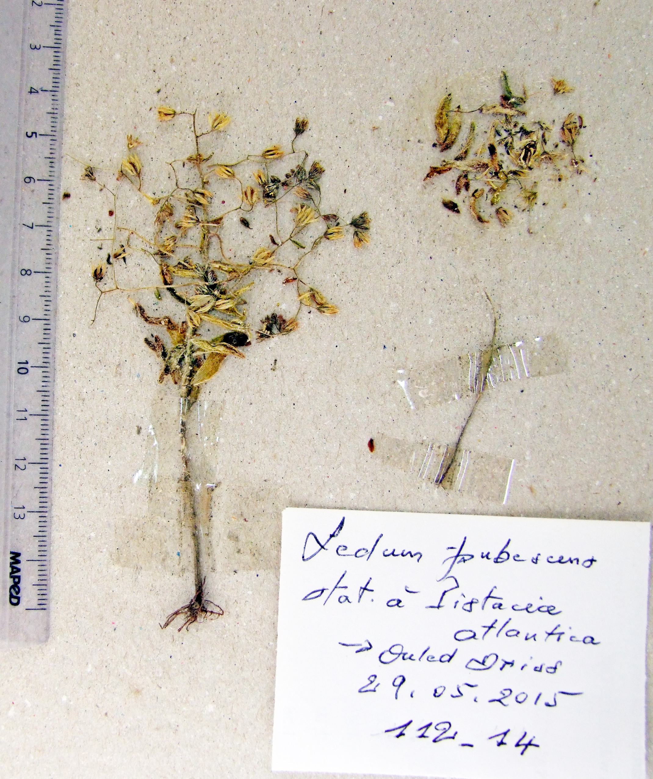 | 112_14 | Crassulaceae Sedum pubescens Vahl | x=7.925833 y=36.353194 z=821 m | Ouled Driss (rocher à C. australis) Souk Ahras 2015-05-29 |  |