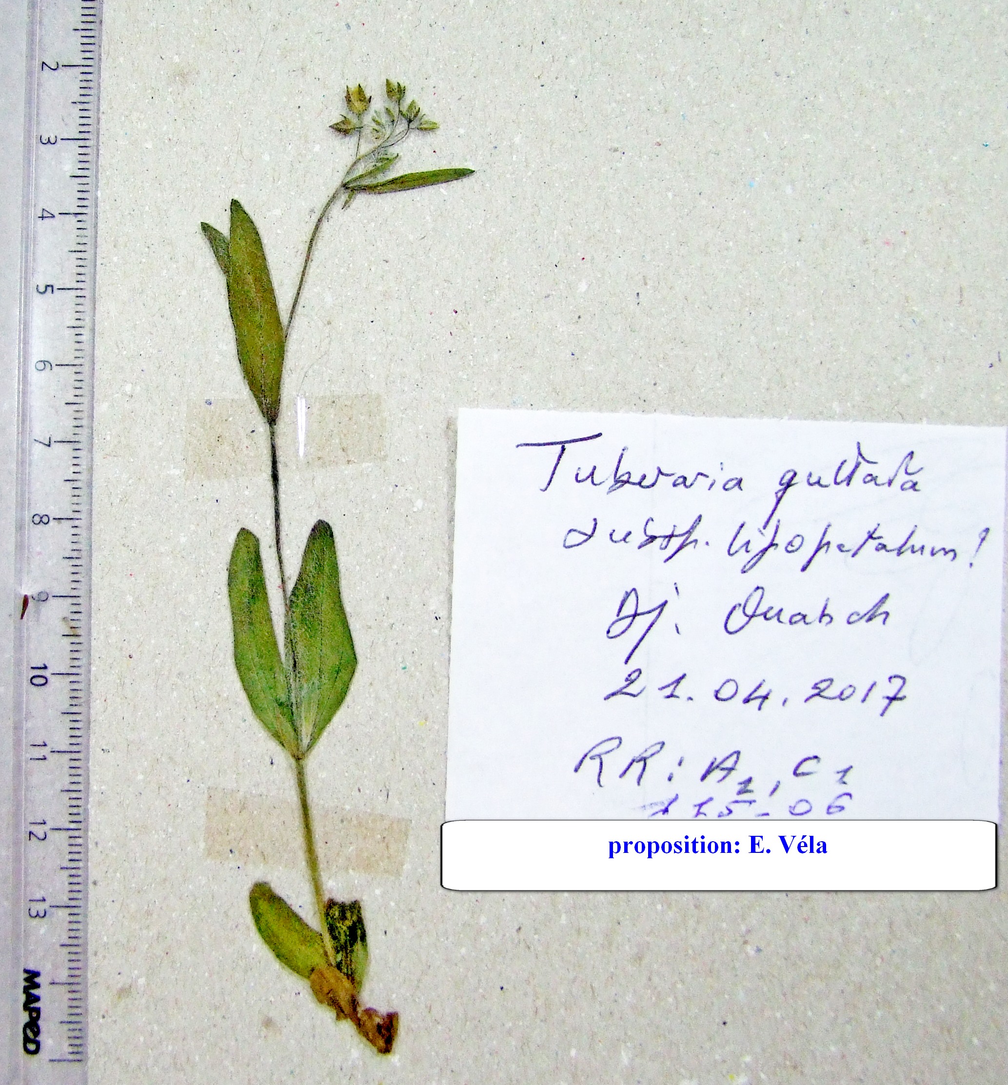 | 104_02 | Crassulaceae Sedum cepaea L. | x=8.365944 y=36.604778 z=790 m | djebel Ghorra étang El Tarf 2012-05-10 | |