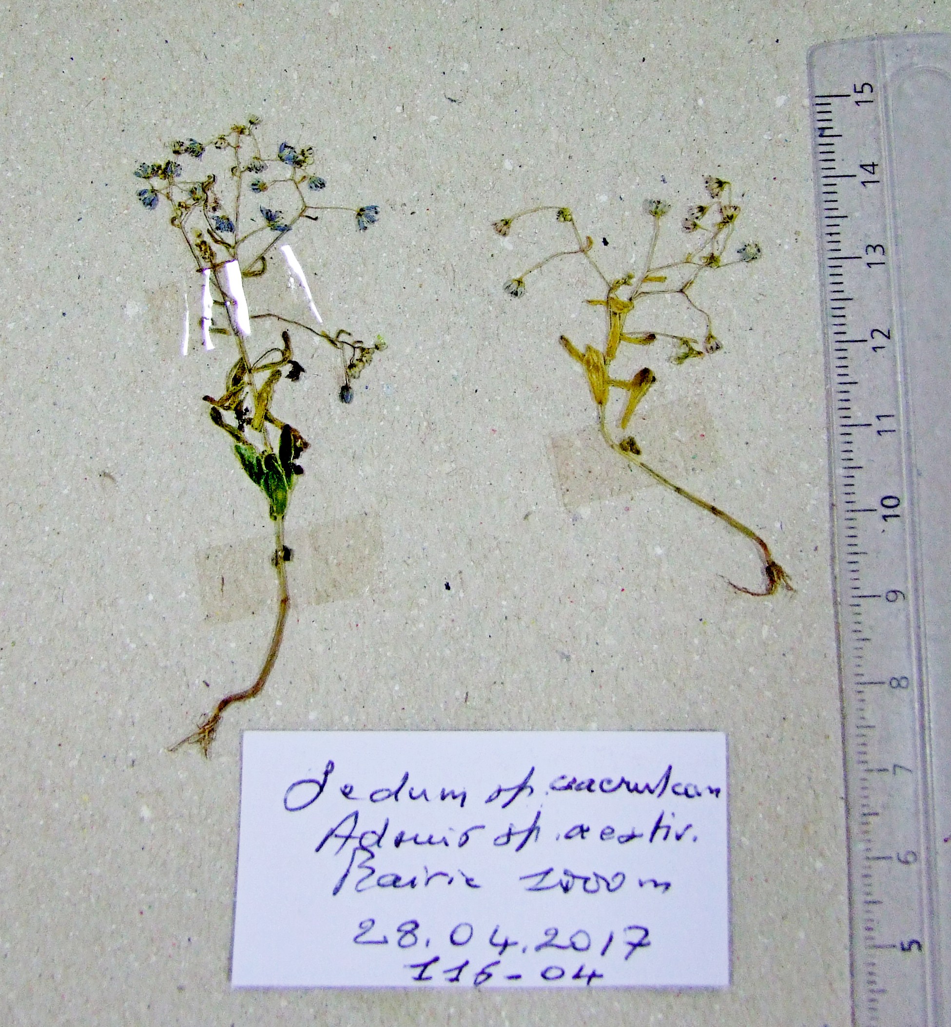 | 116_04 | Crassulaceae Sedum caeruleum L. | x=7.946944 y=36.466028 z=1000 m | Ouled Driss (carrefour & pelouse:1000m) Souk Ahras 2017-04-28 |  |