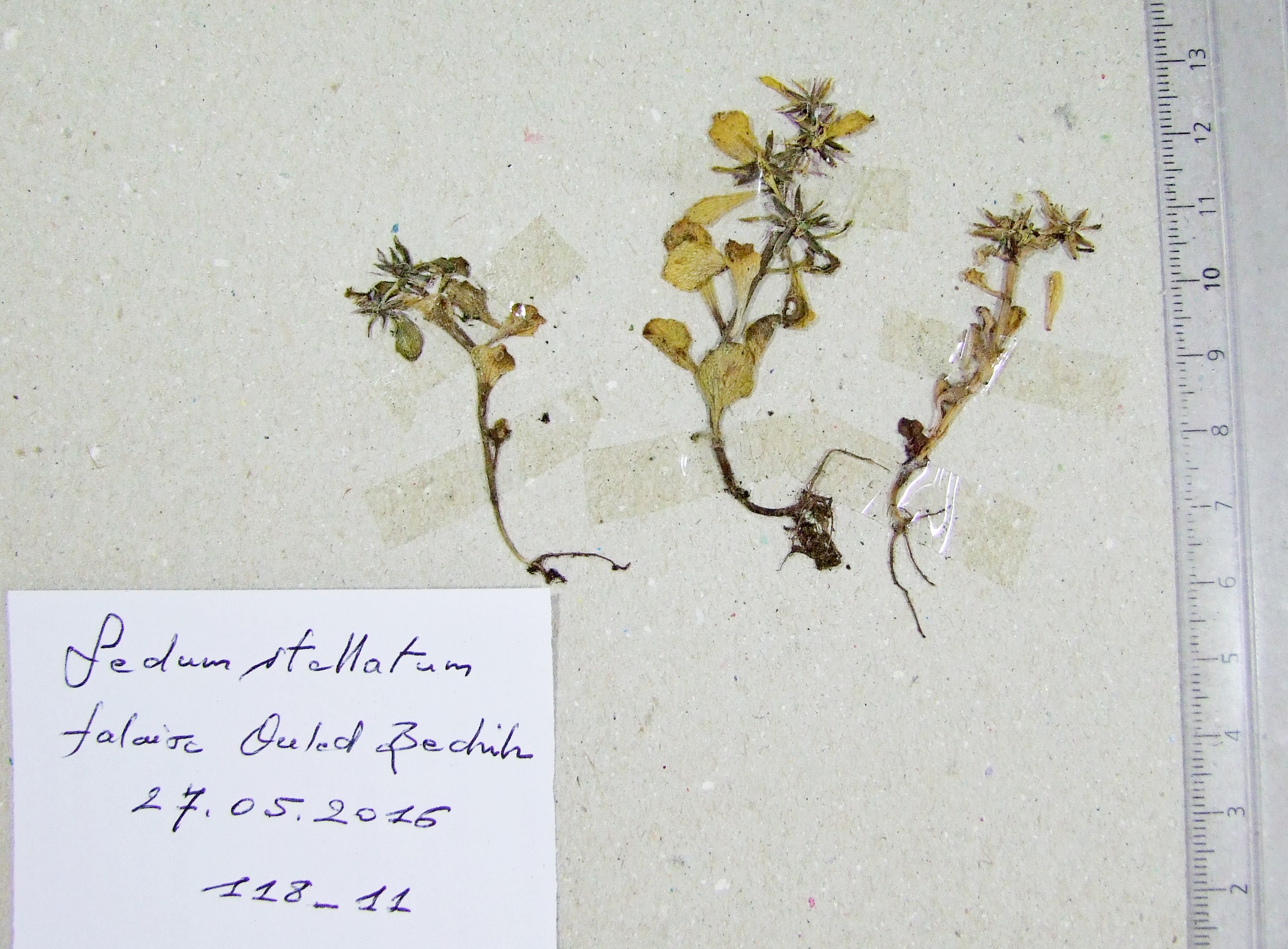 | 118_11 | Crassulaceae Sedum stellatum L. | x=7.869083 y=36.384361 z=991 m | Beni Salah (Achillea) Guelma 2016-05-27 |  |