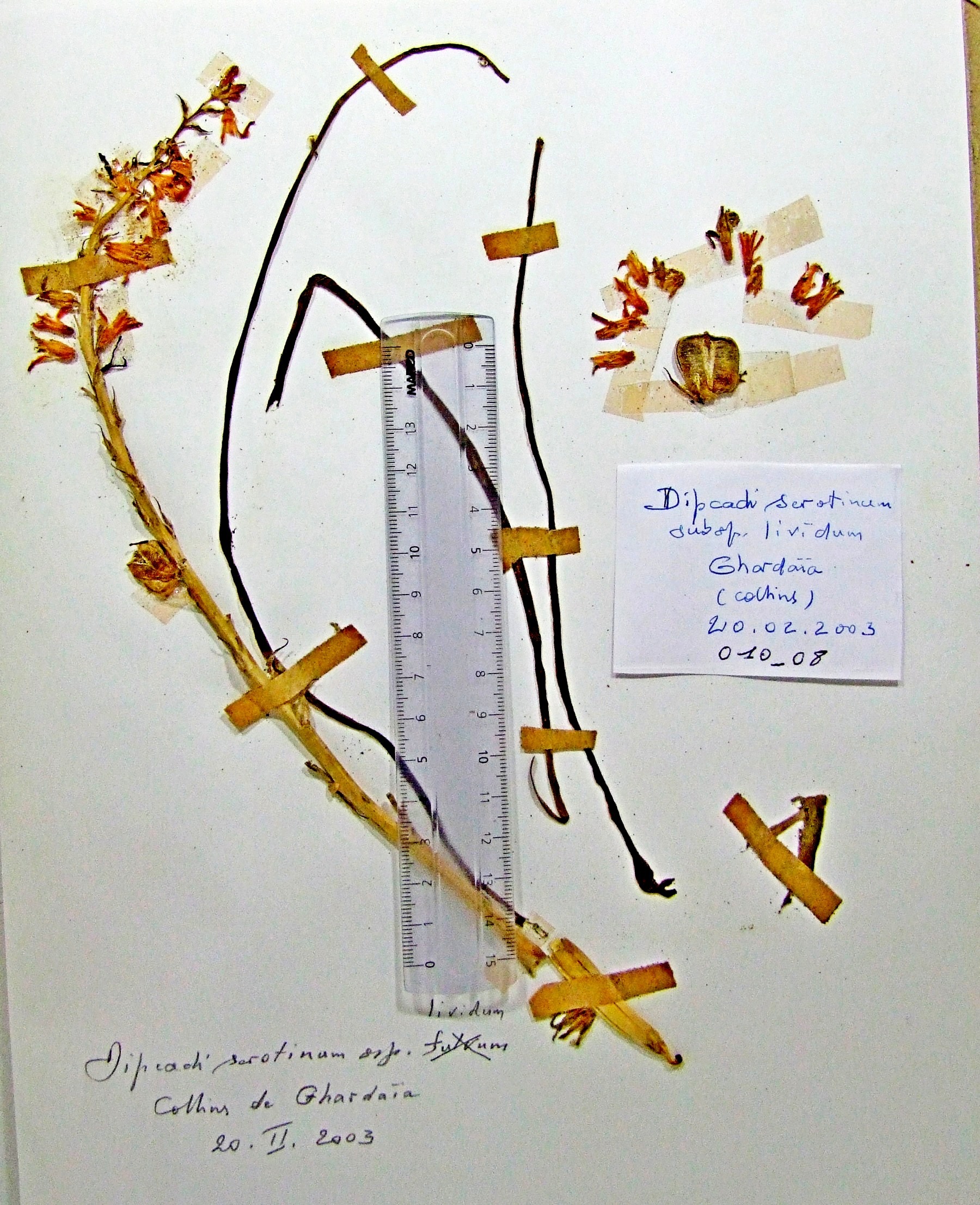 | 032_49 | Orobanchaceae Orobanche crinita Viv. | x=8.204492 y=36.855158 z=38 m | lac Noir 2 El Tarf 1998-03-26 |  |