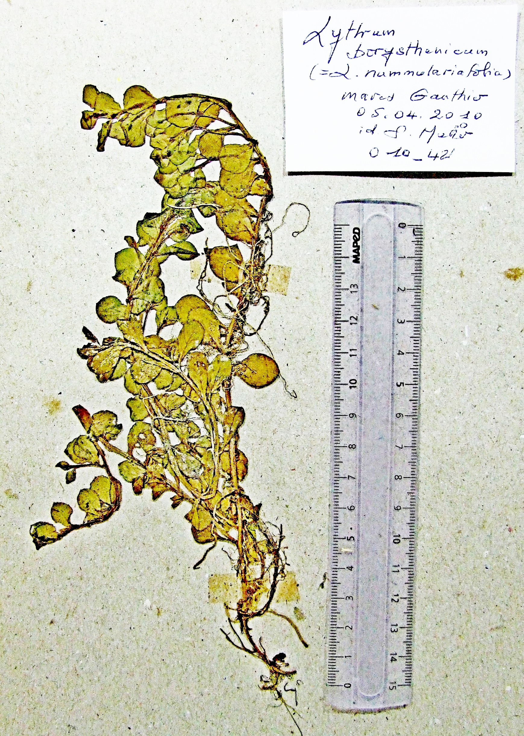 | 035_34 | Euphorbiaceae Chamaesyce peplis (L.) Prokh. | x=8.523444 y=36.881306 z=3 m | lac Tonga El Tarf 1994-12-27 | |