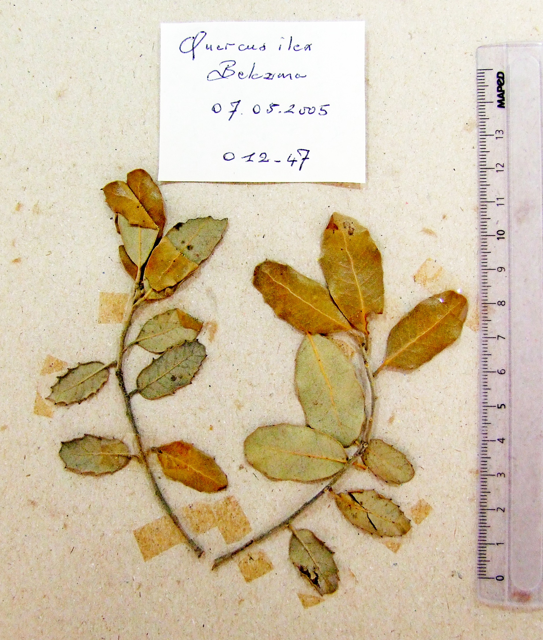 | 012_47 | Fagaceae Quercus ilex L. subsp. ballota | x=6.268694 y=35.680222 z=1152 m | Belezma 1 Batna 2005-05-07 |  |