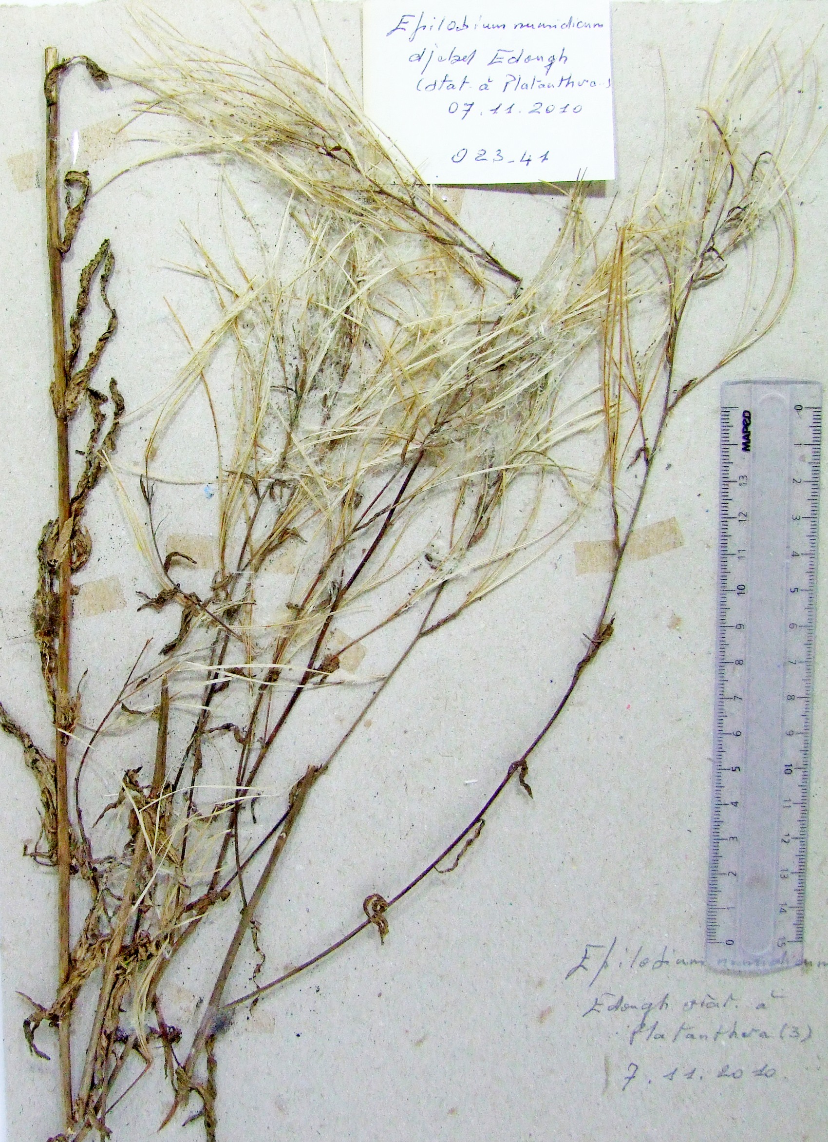 | 023_41 | Onagraceae Epilobium numidicum Batt. | x=7.608556 y=36.924472 z=550 m | djebel Edough 1 (ex-stat. Phyl.scol.) Annaba 2010-11-07 |  |