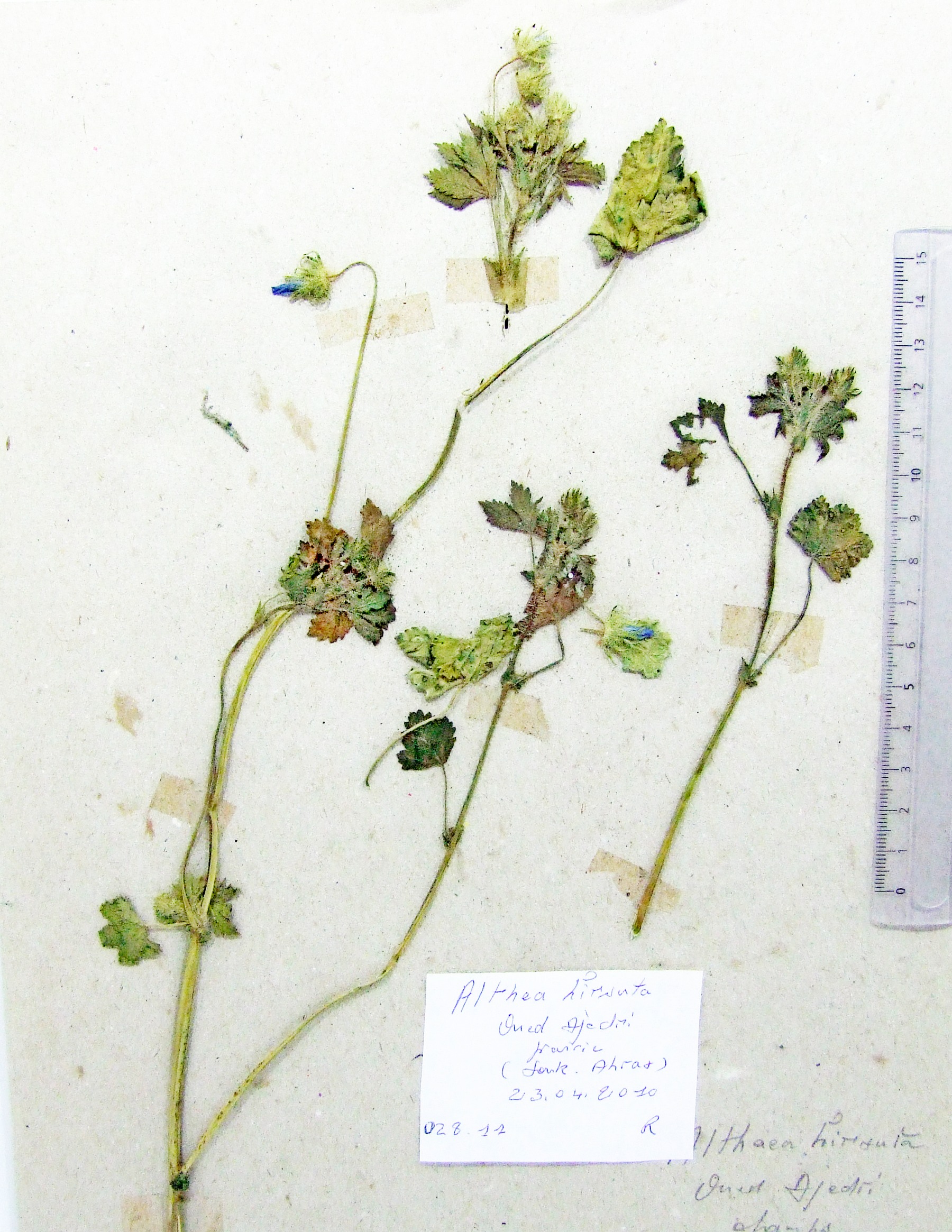 | 013_10 | Malvaceae Malva parviflora L. | x=6.973192 y=35.767539 z=828 m | sebkha Guellif Oum el Bouaghi 2003-07-02 | |