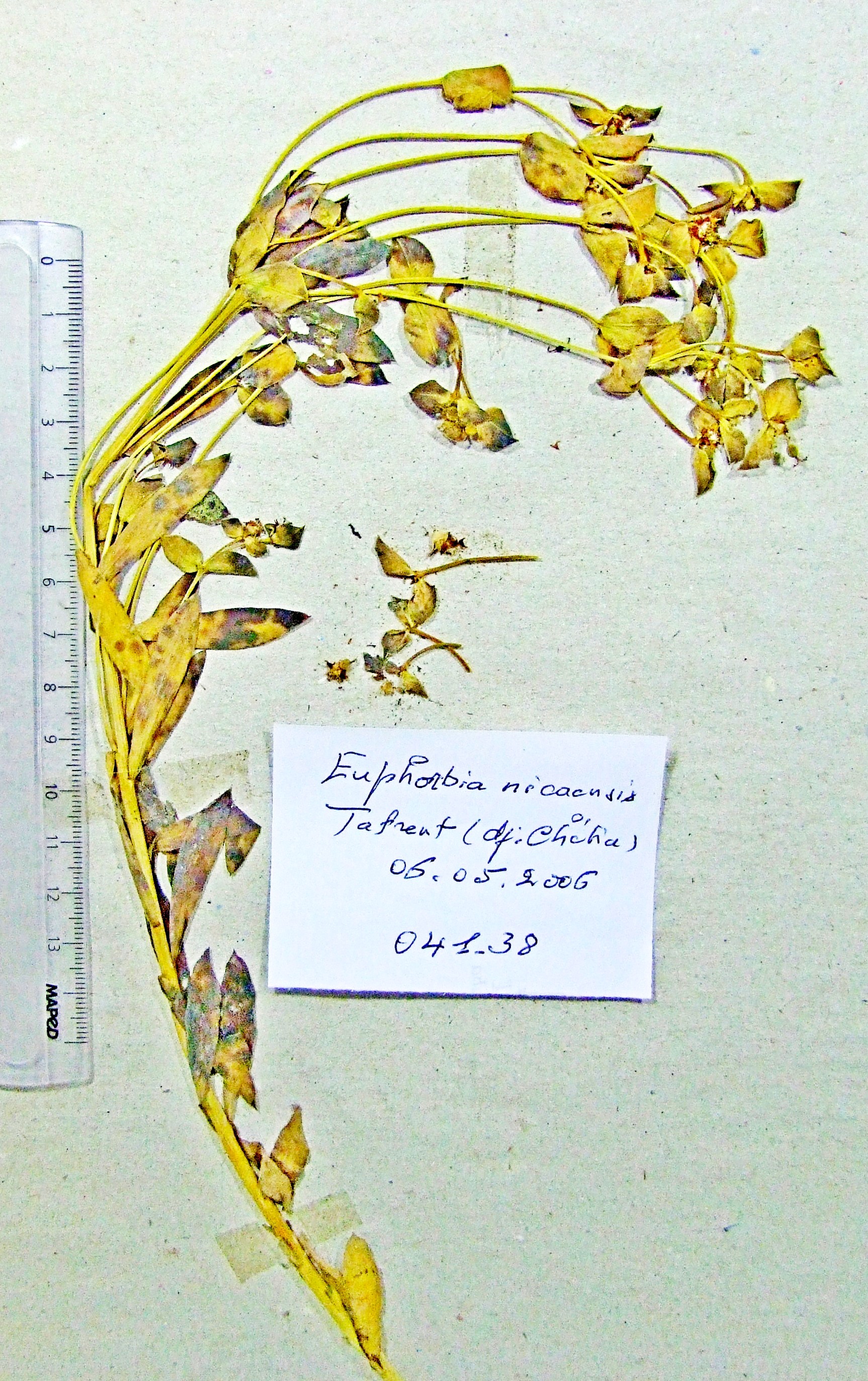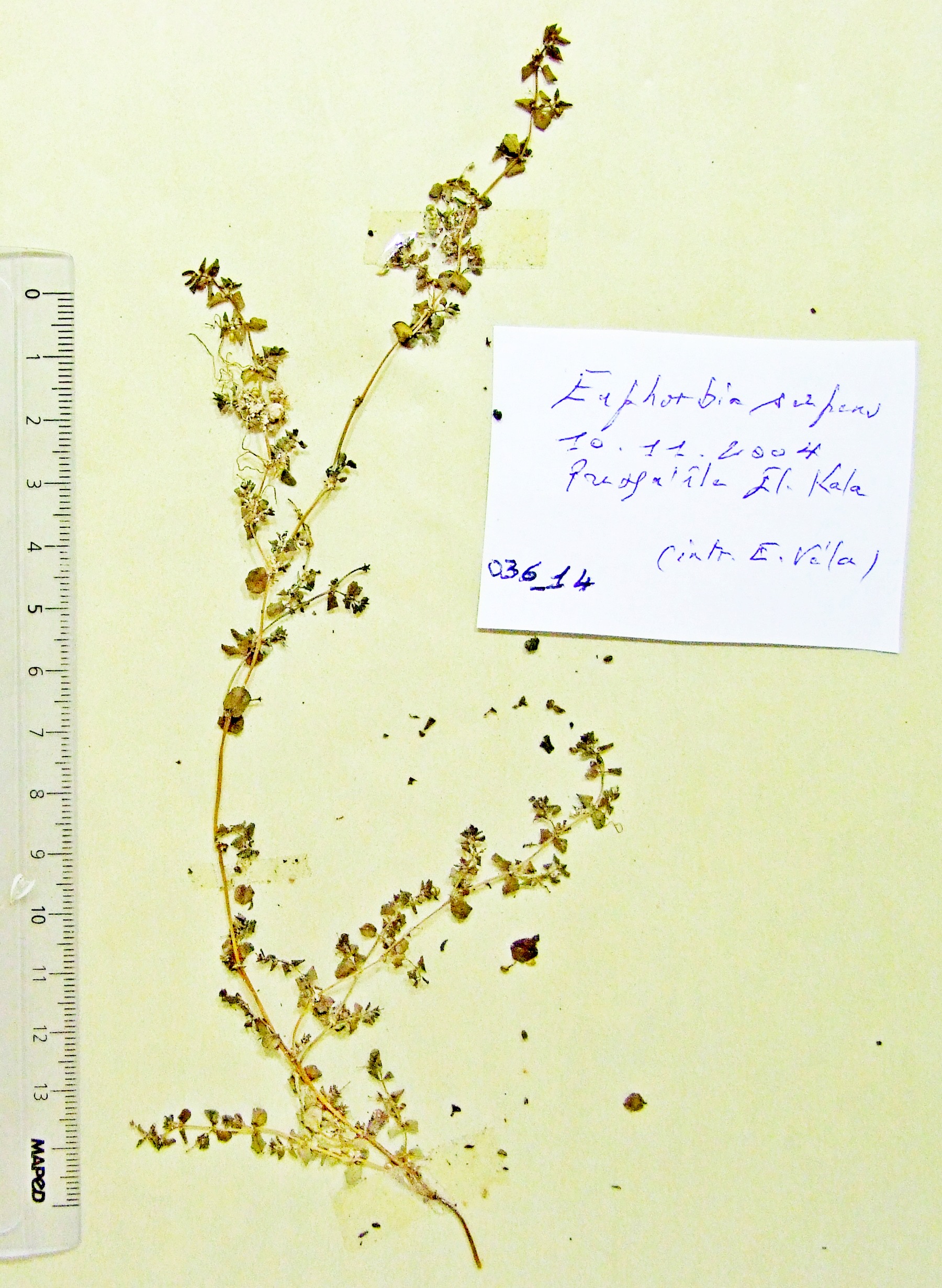 | 036_19 | Euphorbiaceae Euphorbia helioscopia L. subsp. helioscopioides (Loscos & Pardo) Rouy | x=7.012625 y=35.646428 z=831 m | sebkha Ettarf 1 Oum el Bouaghi 2003-03-20 | |