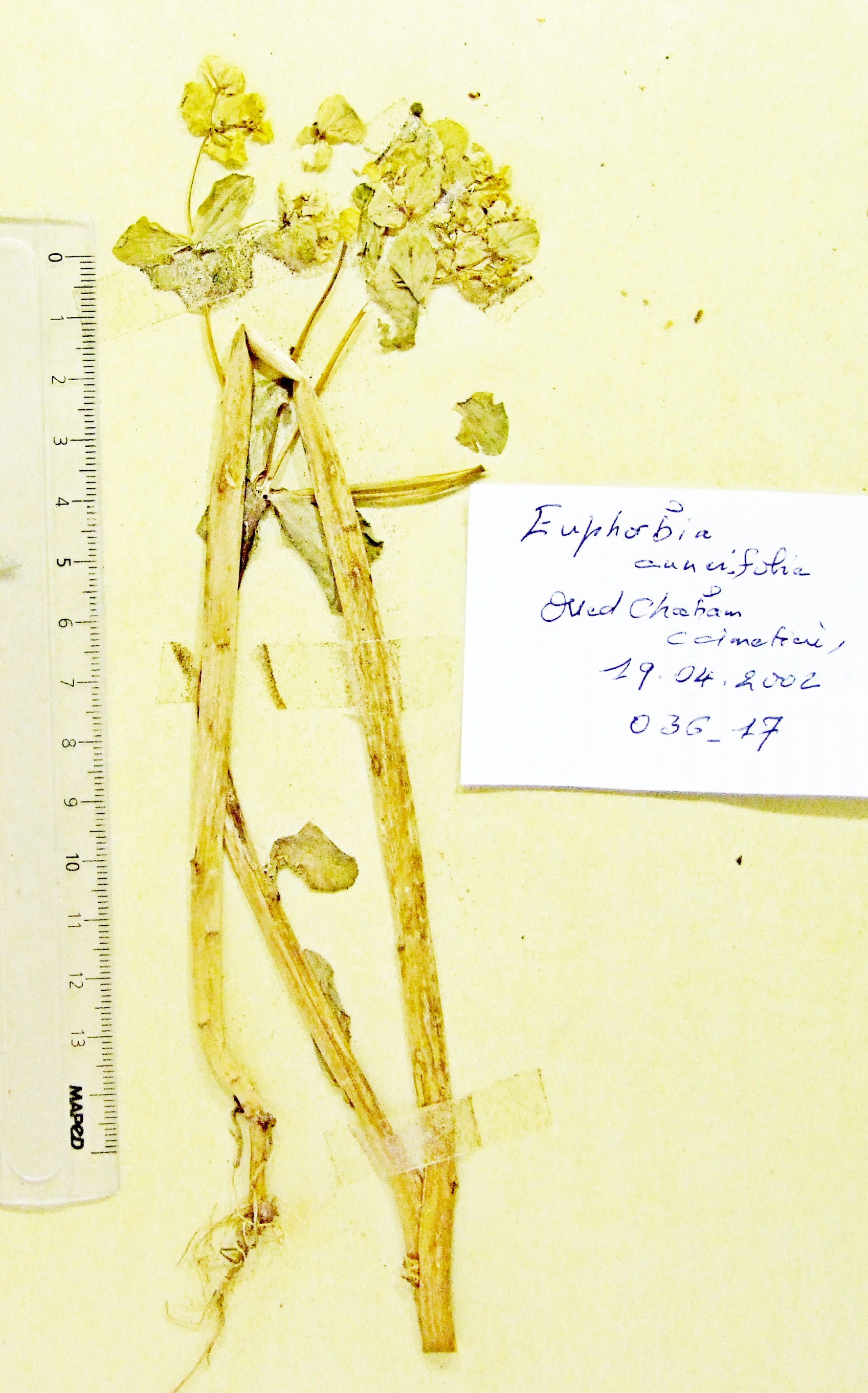 | 036_17 | Euphorbiaceae Euphorbia cuneifolia Guss. | x=7.809131 y=36.373953 z=586 m | oued Chaham 1 Guelma 2002-04-19 |  |