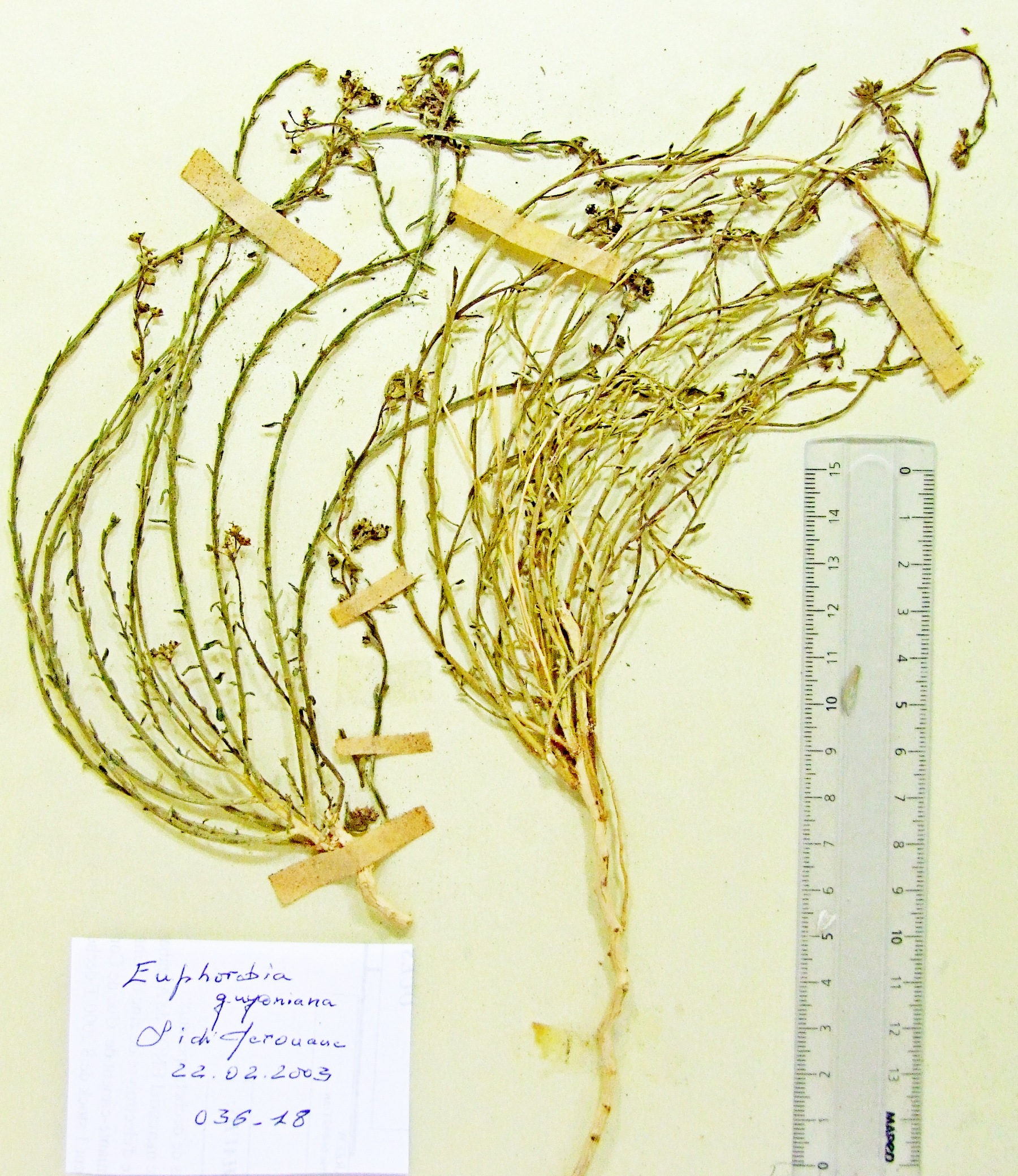 | 036_18 | Euphorbiaceae Euphorbia guyoniana Boiss. & Reut. | x=5.971867 y=34.148114 z=-19 m | Sidi Merouane El Oued 2003-02-22 |  |