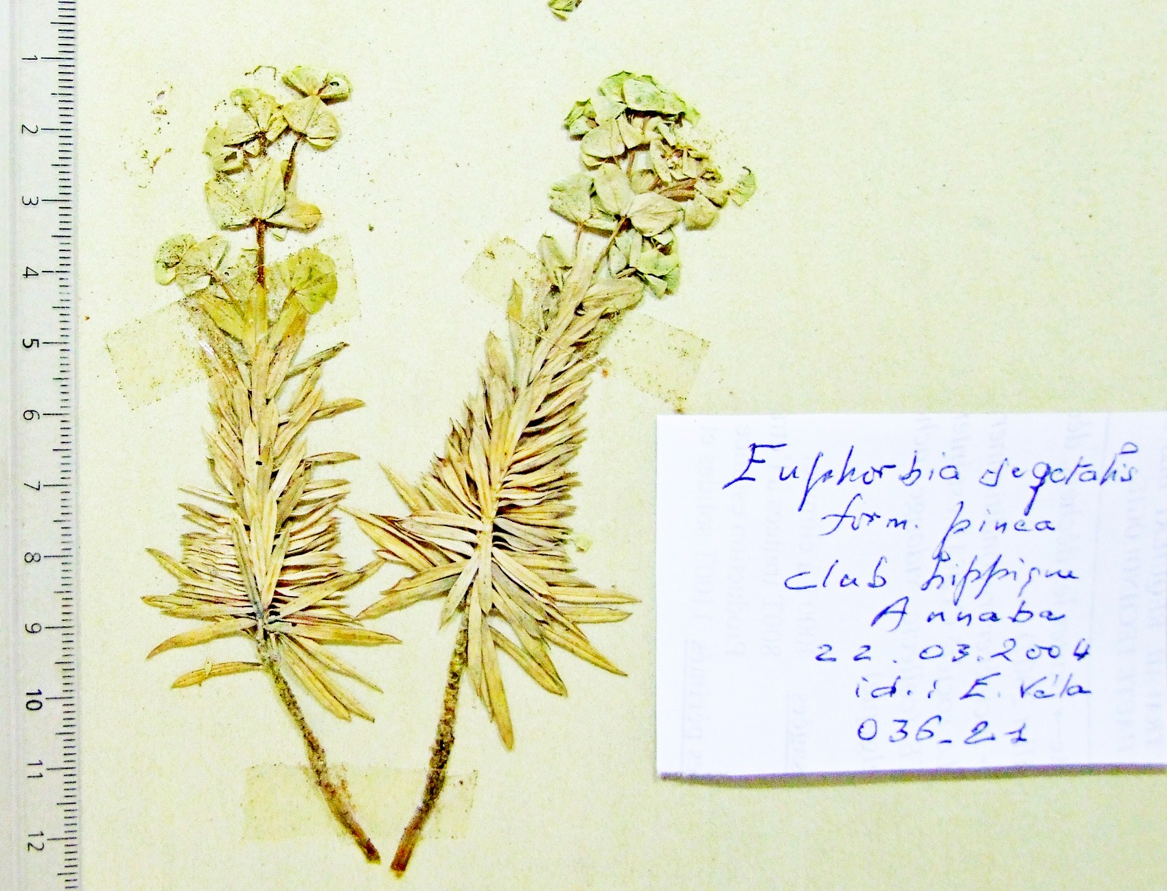 | 036_21 | Euphorbiaceae Euphorbia segetalis L. subsp. pinea (L.) Rouy | x=7.778475 y=36.953494 z=28 m | club hippique Annaba 2004-03-22 |  |