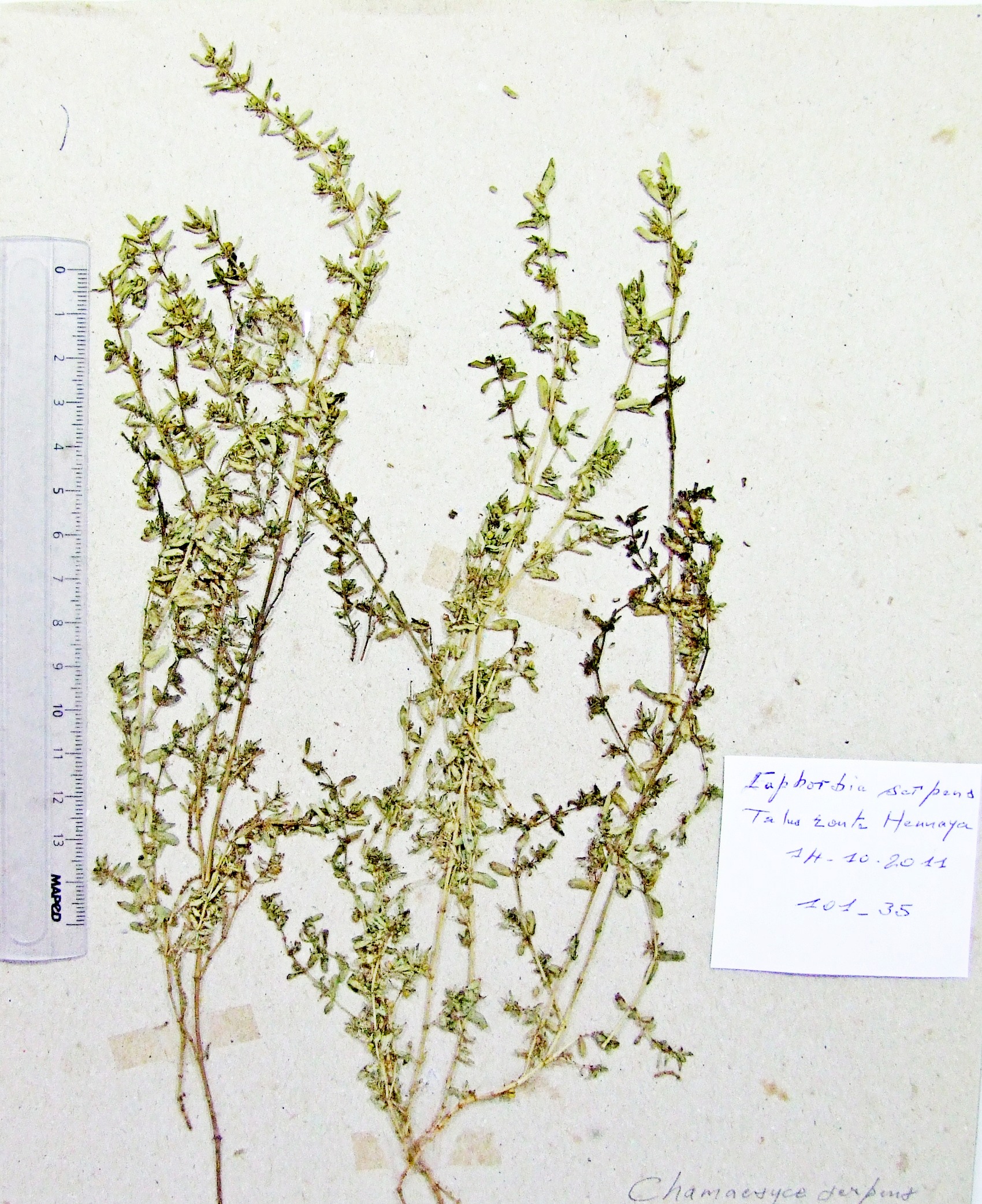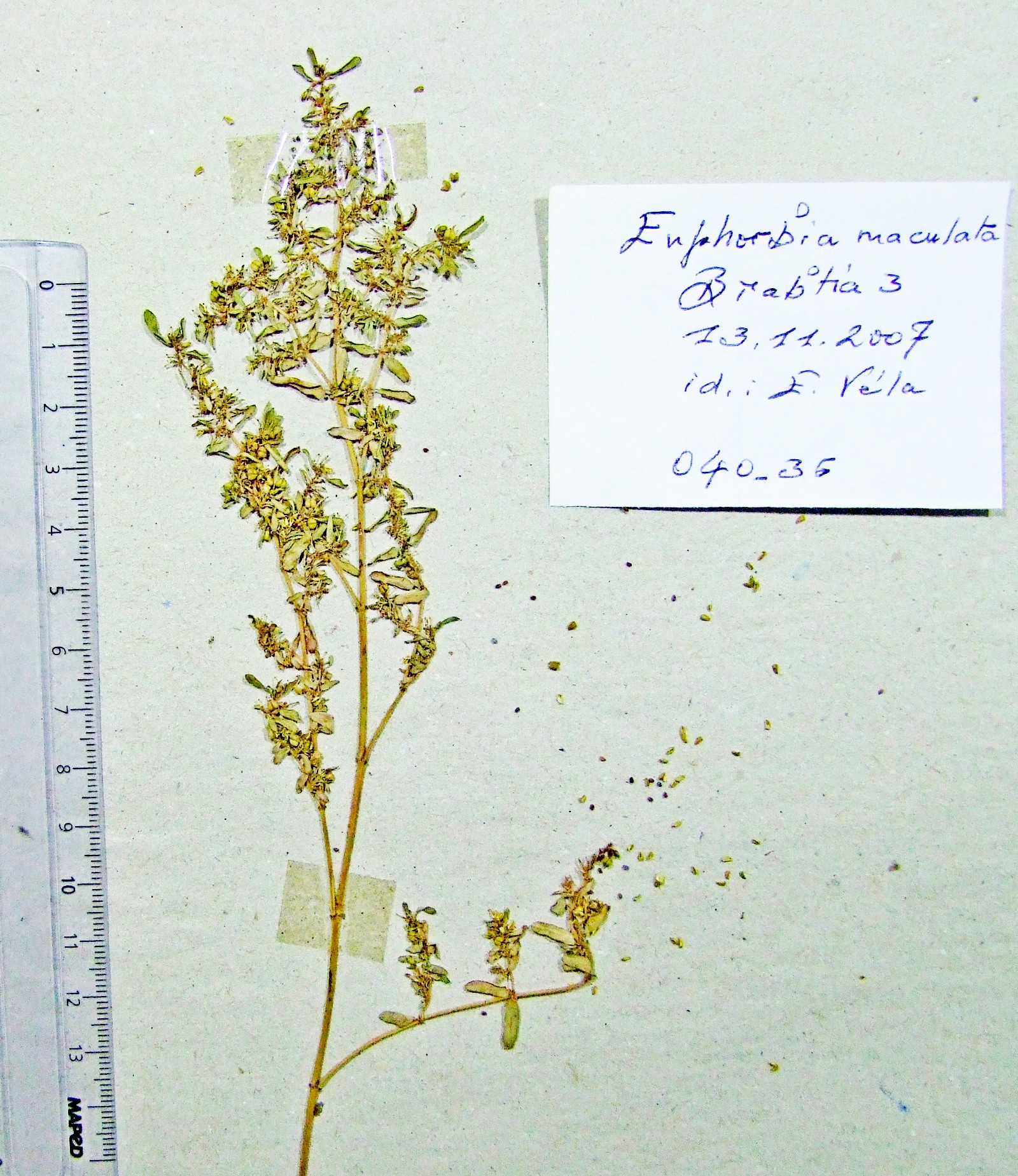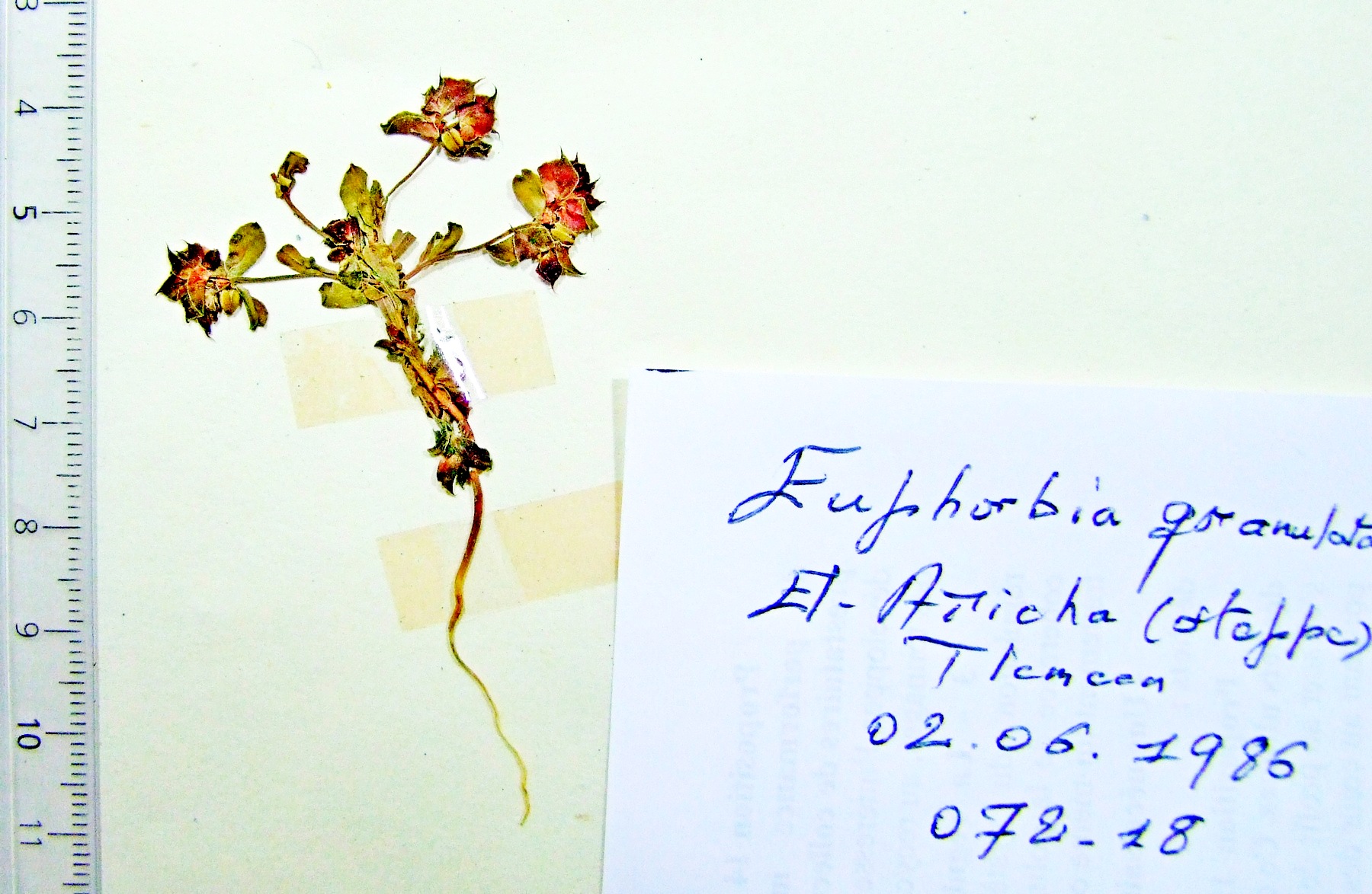 | 072_18 | Euphorbiaceae Chamaesyce granulata (Forssk.) Sojàk | x=1.2695 y=34.242394 z=1315 m | steppe El Aricha Tlemcen 1986-06-02 |  |