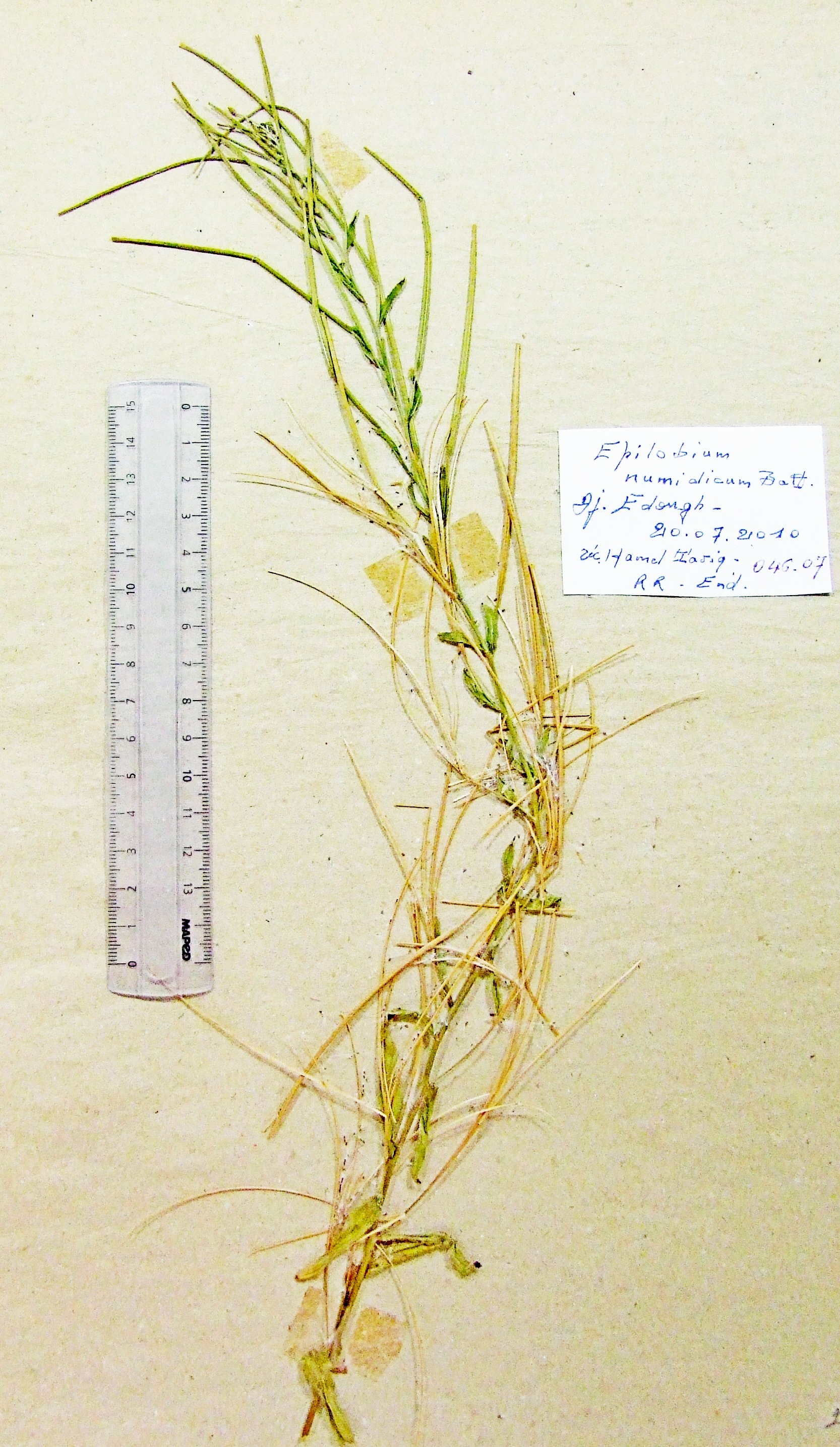 | 046_07 | Onagraceae Epilobium numidicum Batt. | x=7.648 y=36.913611 z=598 m | djebel Edough 2 Annaba 2010-07-20 |  |