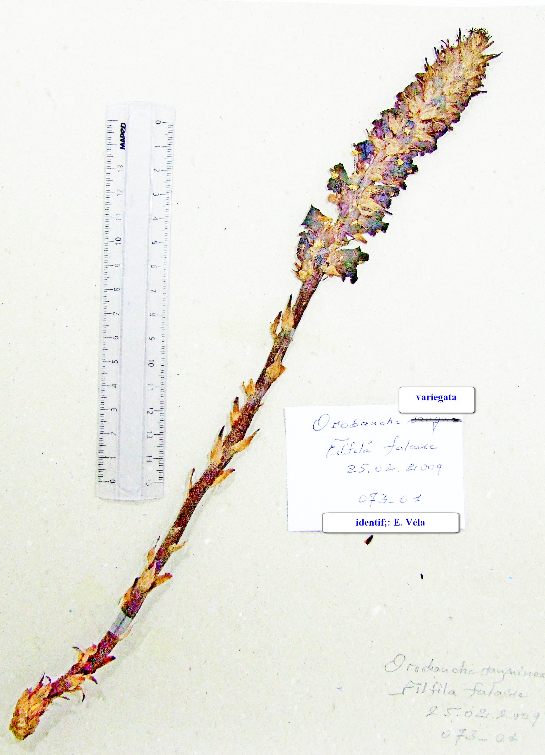 | 073_01 | Orobanchaceae Orobanche variegata Wallr. | x=7.088803 y=36.887544 z=228 m | Filfila 2 Skikda 2009-02-25 |  |