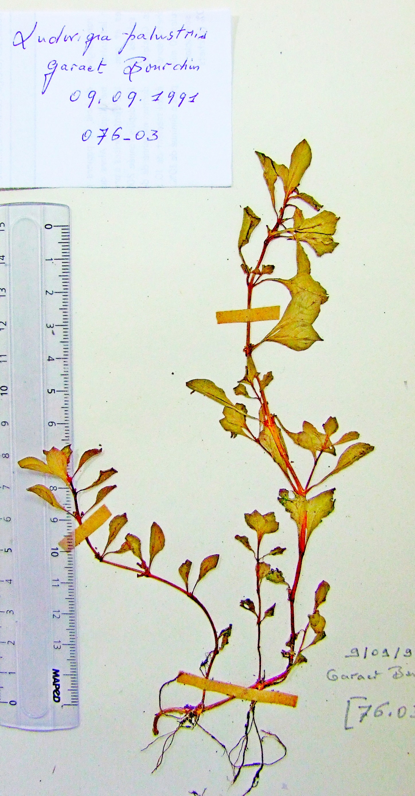 | 076_01 | Onagraceae Ludwigia palustris (L.) Elliott | x=7.289961 y=36.901347 z=14 m | lac Sidi Freitis Skikda 1992-12-04 | |