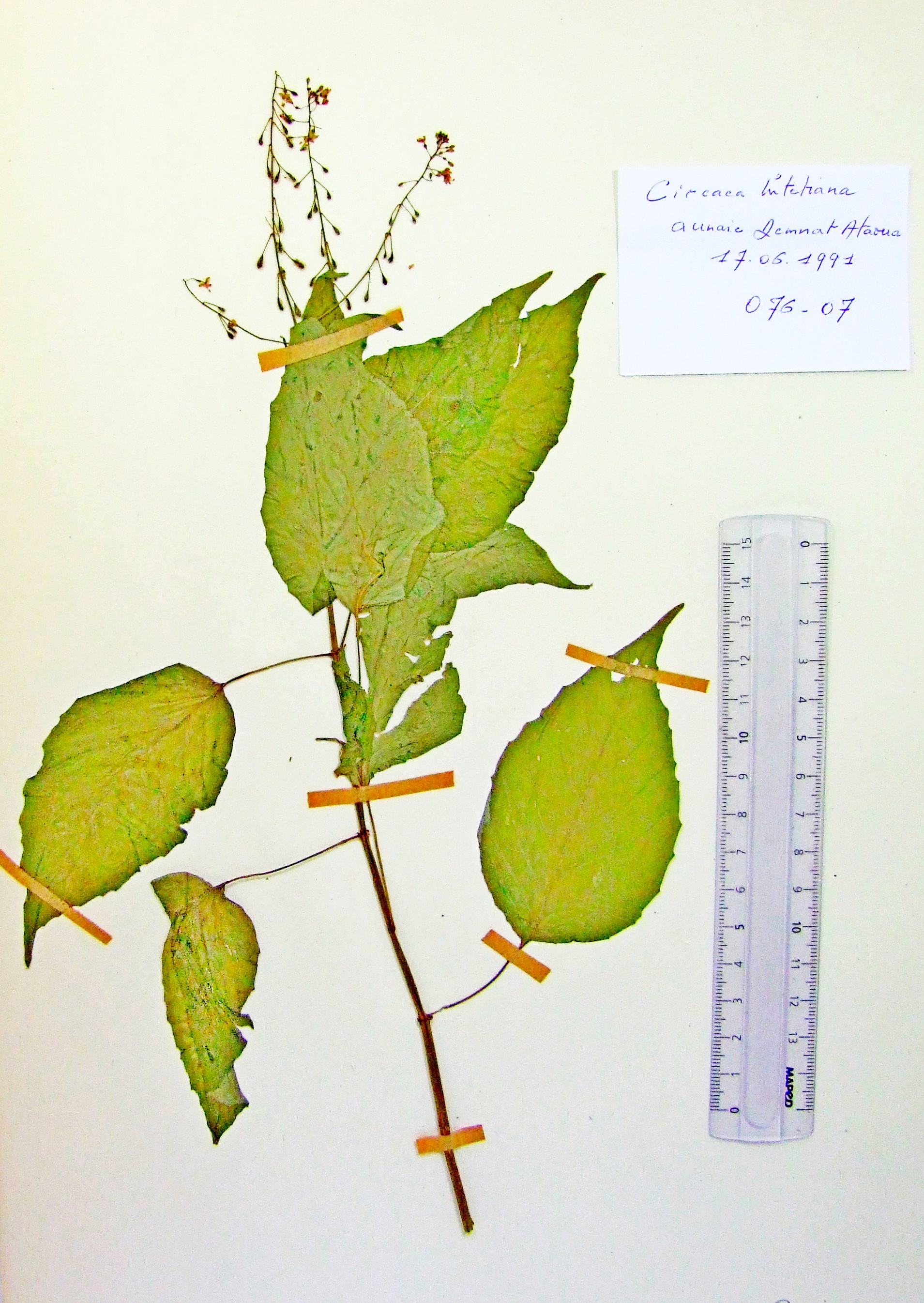 | 076_07 | Onagraceae Circaea lutetiana L. | x=7.259181 y=36.889869 z=38 m | aunaie Demnat Ataoua Skikda 1991-06-17 |  |