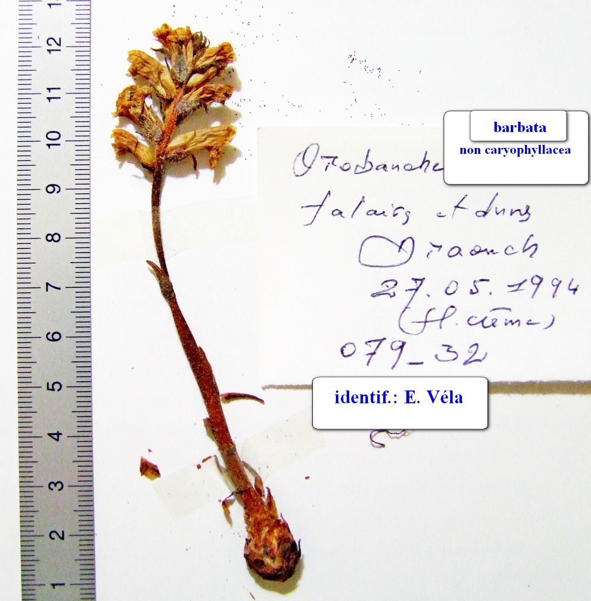 | 079_32 | Orobanchaceae Orobanche minor Sm. | x=8.057567 y=36.878575 z=30 m | plage Draouch El Tarf 1994-05-27 |  |