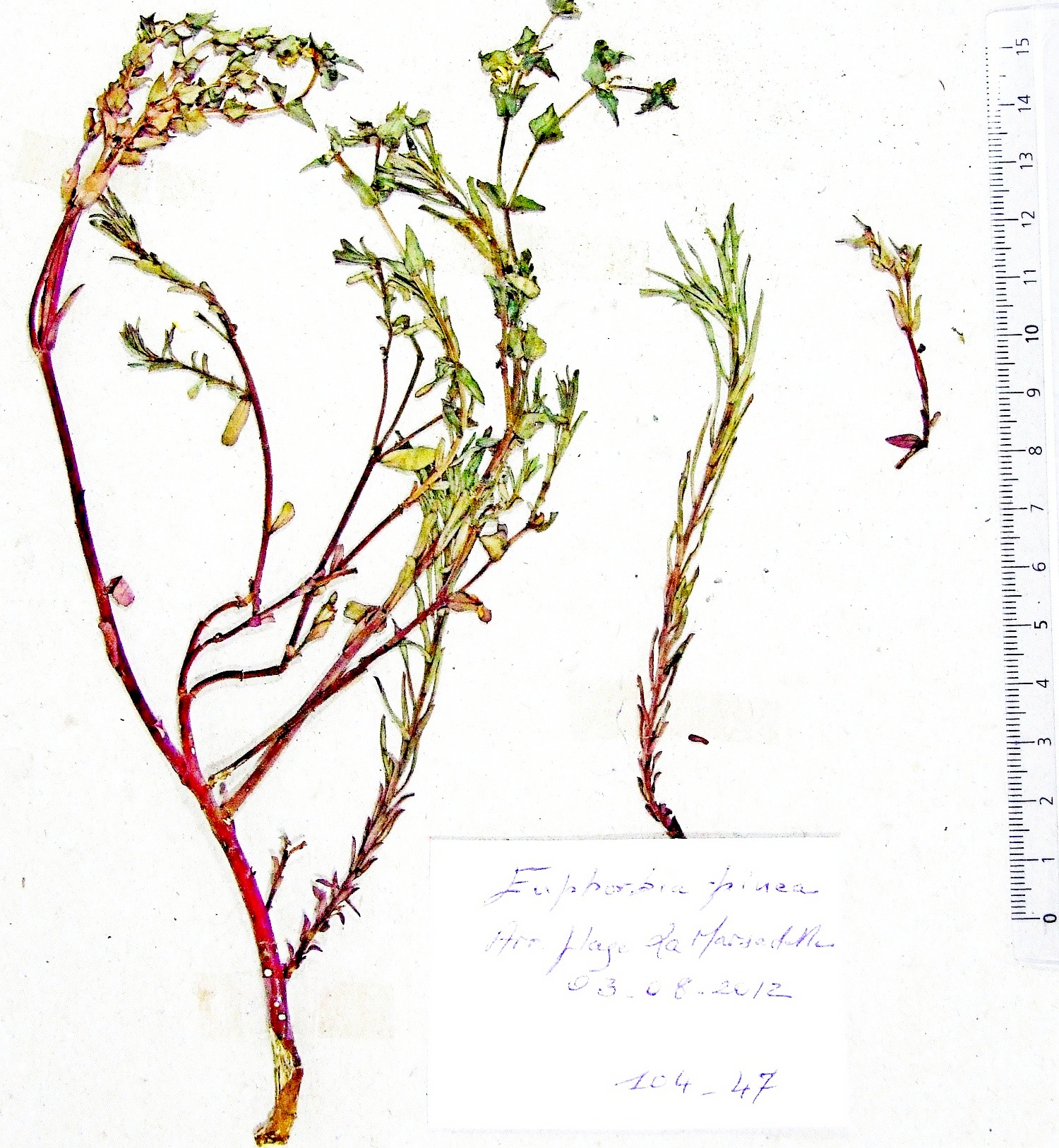 | 104_47 | Euphorbiaceae Euphorbia segetalis L. subsp. pinea (L.) Rouy | x=7.255167 y=37.011278 z=1 m | plage la Marsadelle Skikda 2012-08-03 |  |