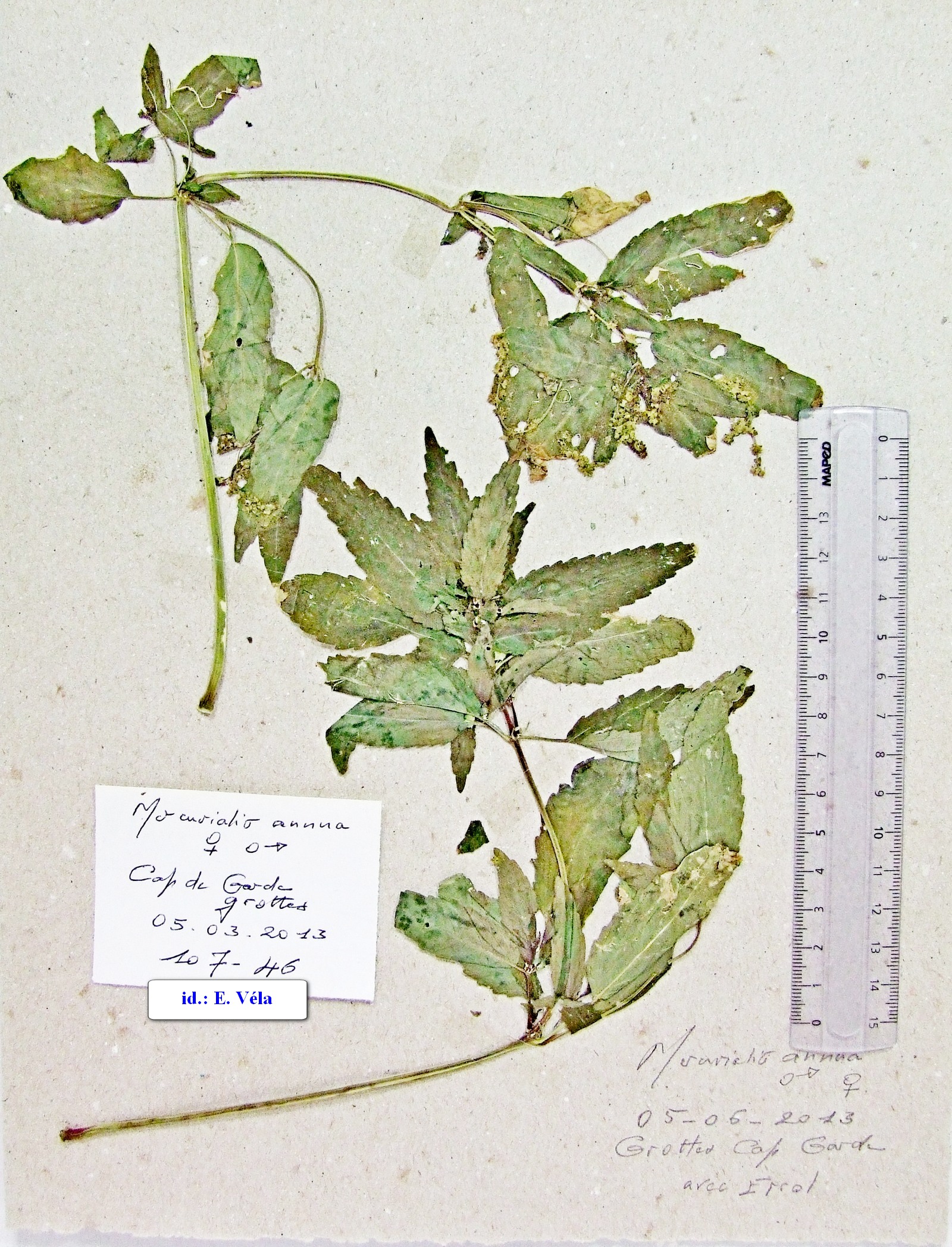 | 107_46 | Euphorbiaceae Mercurialis annua L. | x=7.776278 y=36.961944 z=82 m | cap de Garde grottes Annaba 2013-06-05 |  |