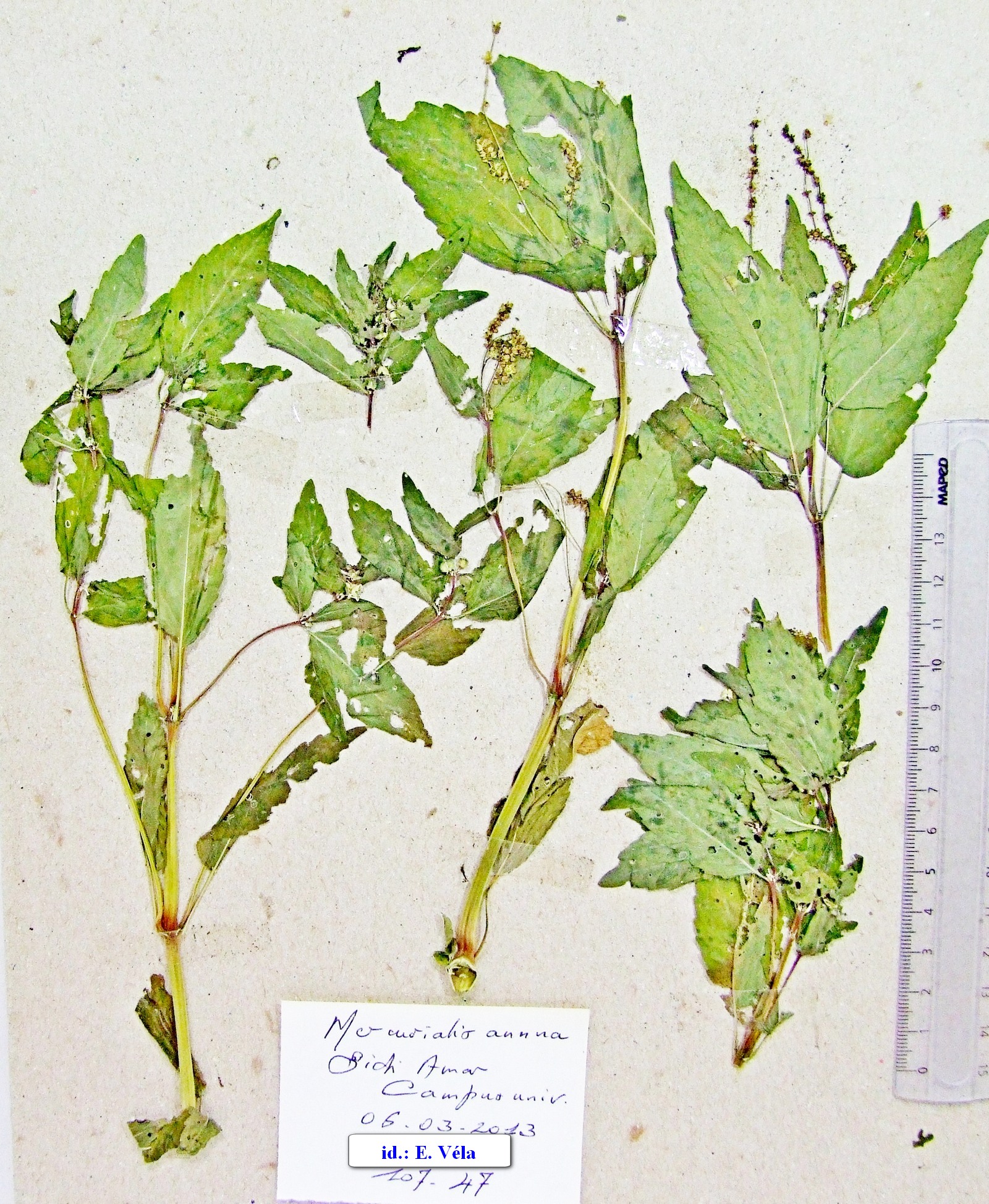 | 036_12 | Euphorbiaceae Mercurialis annua L. | x=6.434431 y=35.706919 z=891 m | Medghacen Batna 2003-03-19 | |