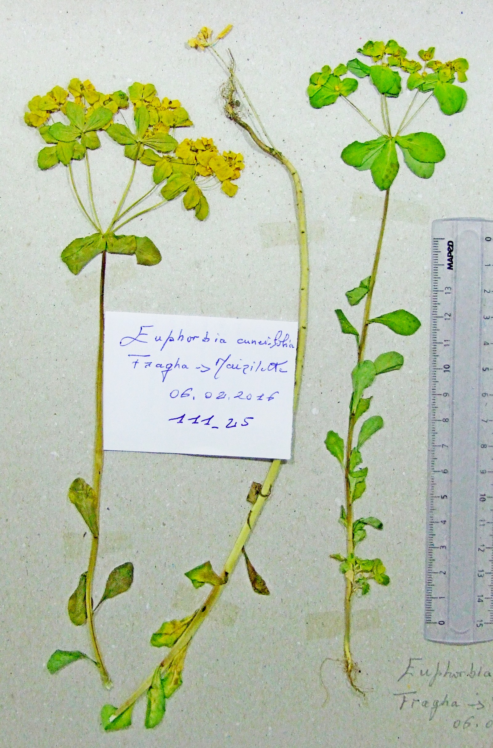 | 111_25 | Euphorbiaceae Euphorbia cuneifolia Guss. | x=7.687508 y=36.577811 z=202 m | Maizilette (prox. S) Guelma 2016-02-06 |  |