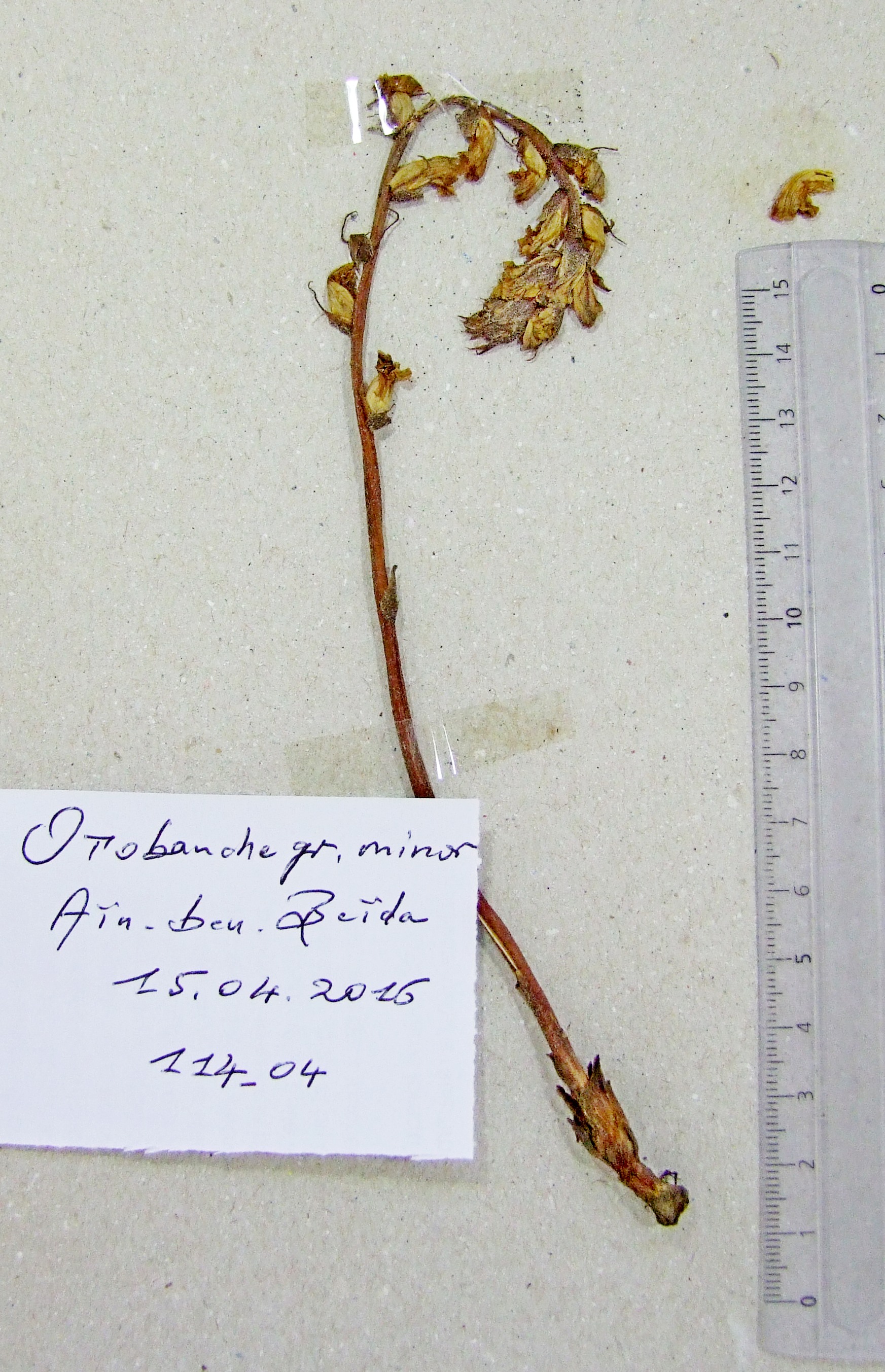| 040_31 | Orobanchaceae Orobanche minor Sm. | x=5.87935 y=34.870592 z=211 m | Droh Biskra 2007-05-17 | |