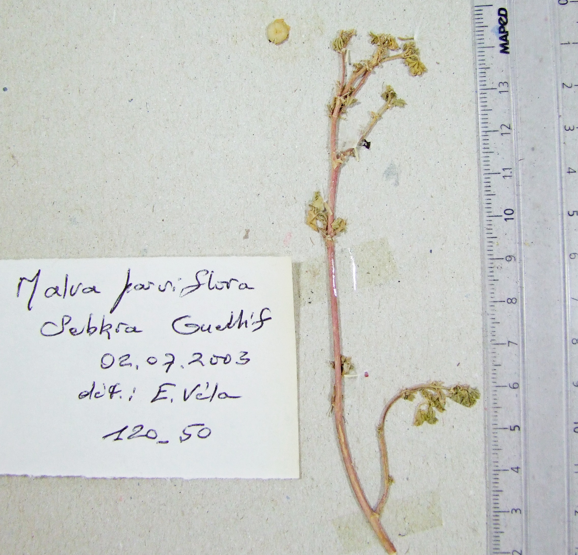 | 120_50 | Malvaceae Malva parviflora L. | x=6.973192 y=35.767539 z=828 m | sebkha Guellif Oum el Bouaghi 2003-07-02 |  |