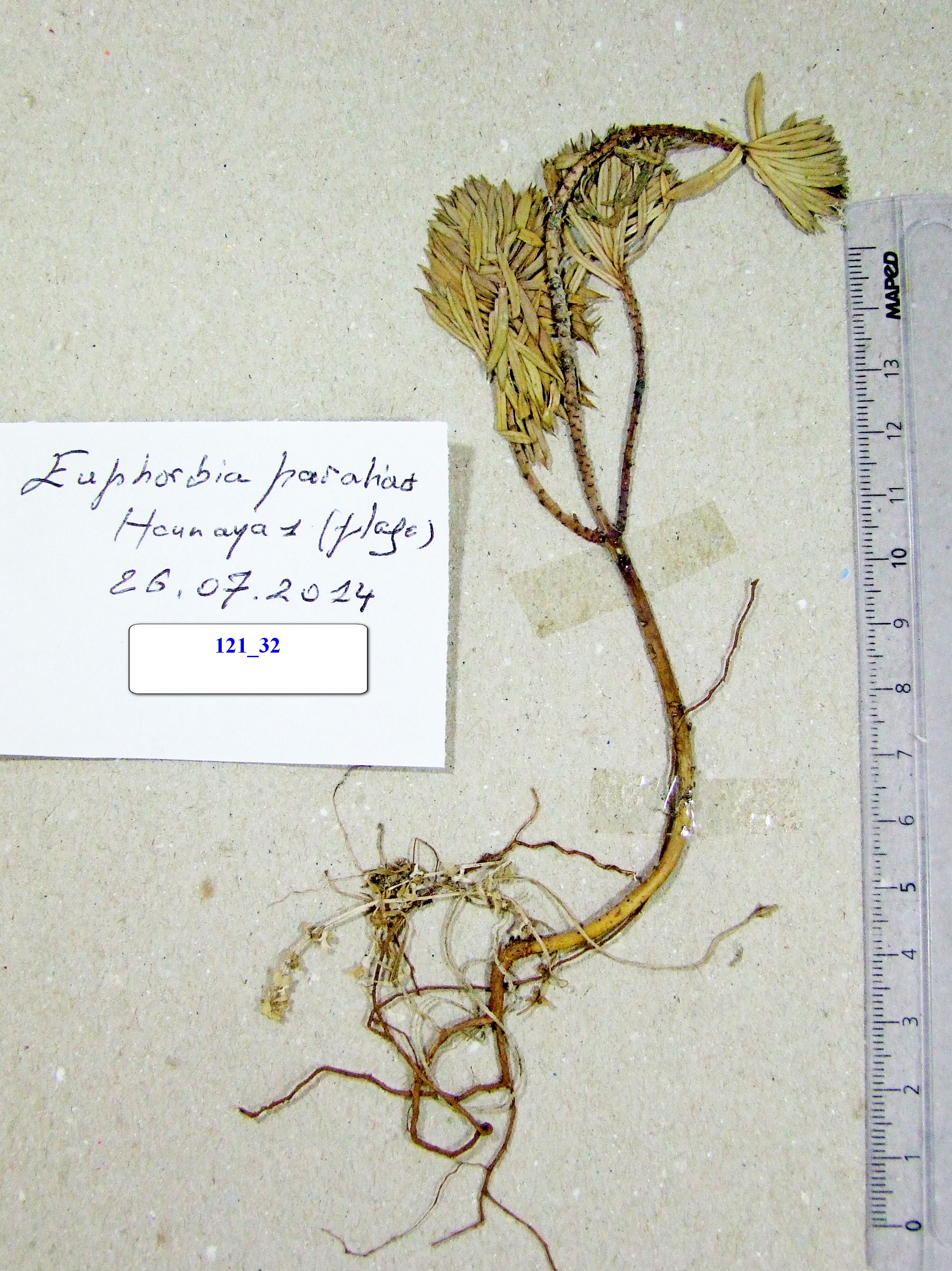 | 121_32 | Euphorbiaceae Euphorbia paralias L. | x=8.130183 y=36.903686 z=5 m | plage Hennaya El Tarf 2014-07-26 |  |