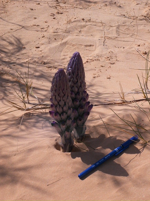 | ph010_36 | Orobanchaceae Cistanche violacea (Desf.) Hoffmanns. & Link | x=5.971867 y=34.148114 z=-19 m | Sidi Merouane El Oued 2003-02-22 |  |